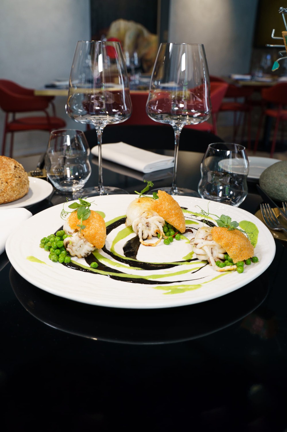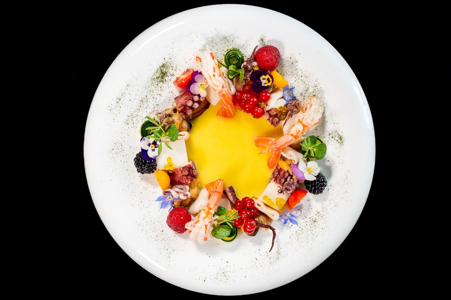 | Seppie di Porto Santo Spirito, pisellini in doppia consistenza, salsa al nero, chips di paprika | (1-2-4-14) | 32 € |