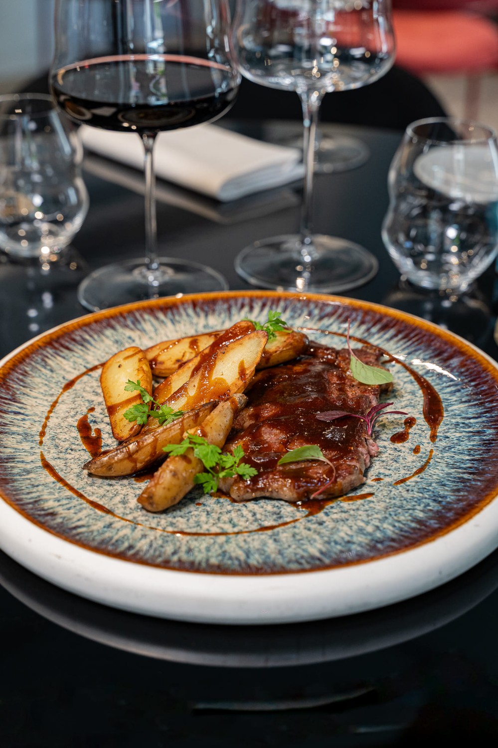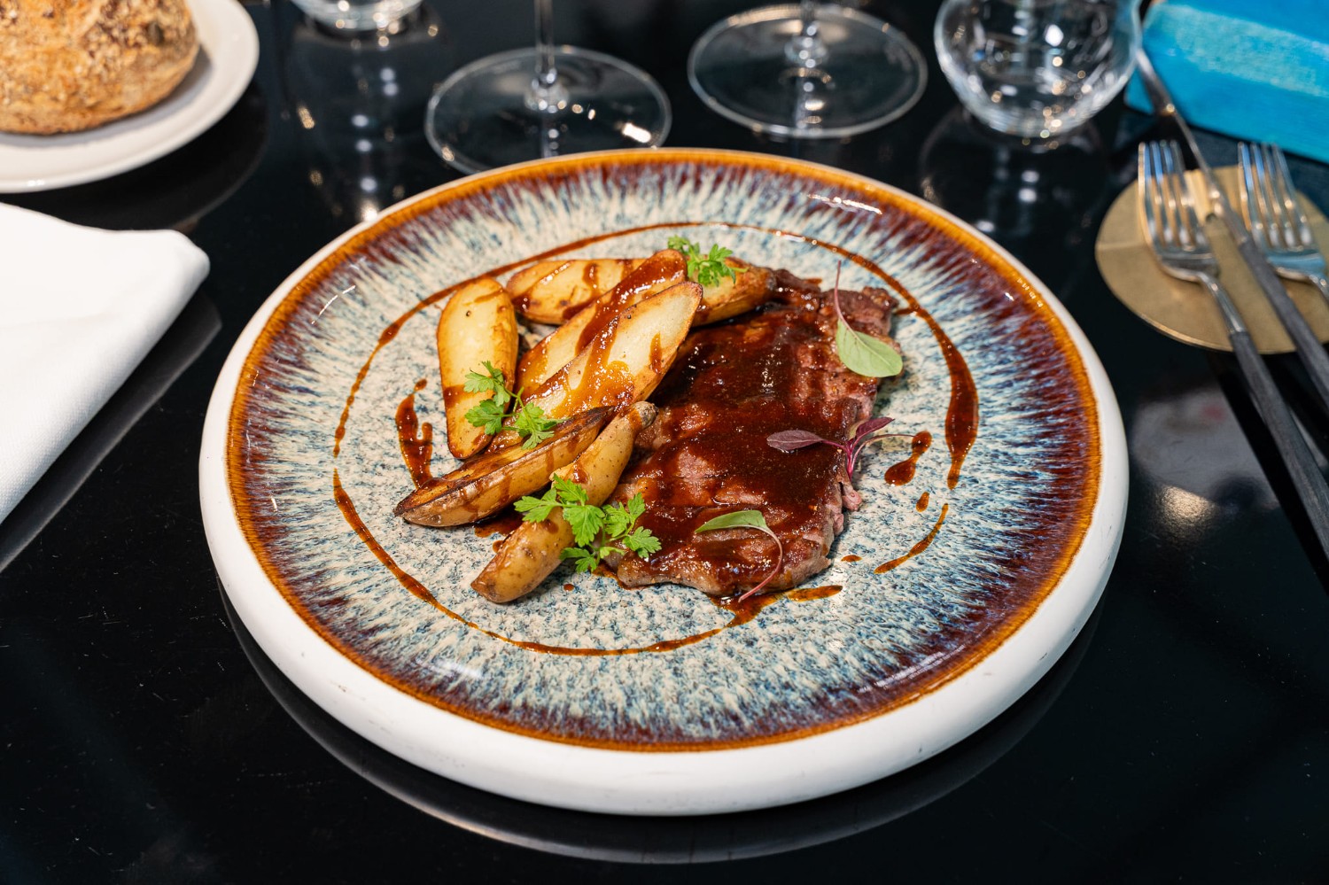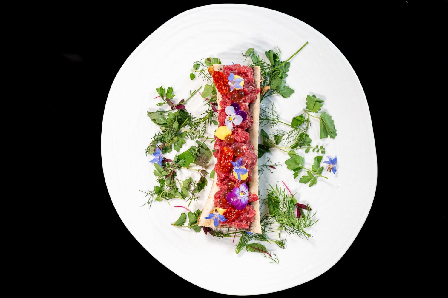 | Battuta di manzetta mantovana sul suo midollo, pecorino allo zafferano, scalogno, pomodorini confit (in alternativa, con tartufo 35 €) | (7) | 28 € |