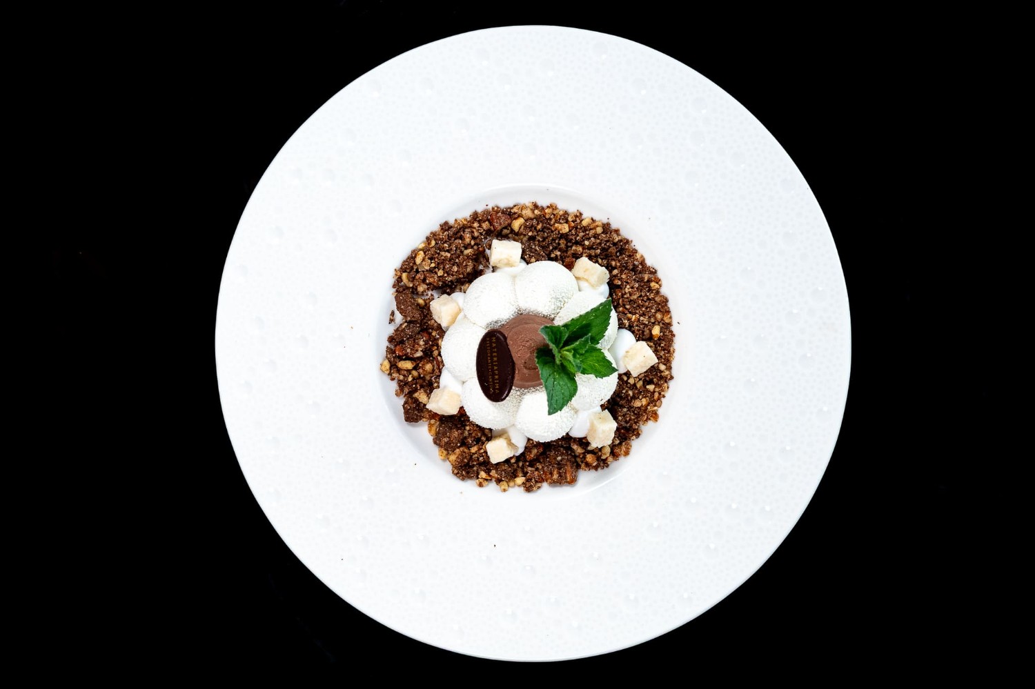 | Cremoso al cocco, ganache al cioccolato Caraibe 66%, terreno di noci pecan | (1-3-7-8) | 10 € |